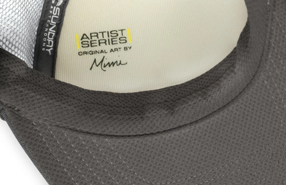 - Inspired by outdoor adventures west of the Mississippi, artist Mimi Williams used block prints to create the relaxing design featured in this season’s Sail Away Trucker