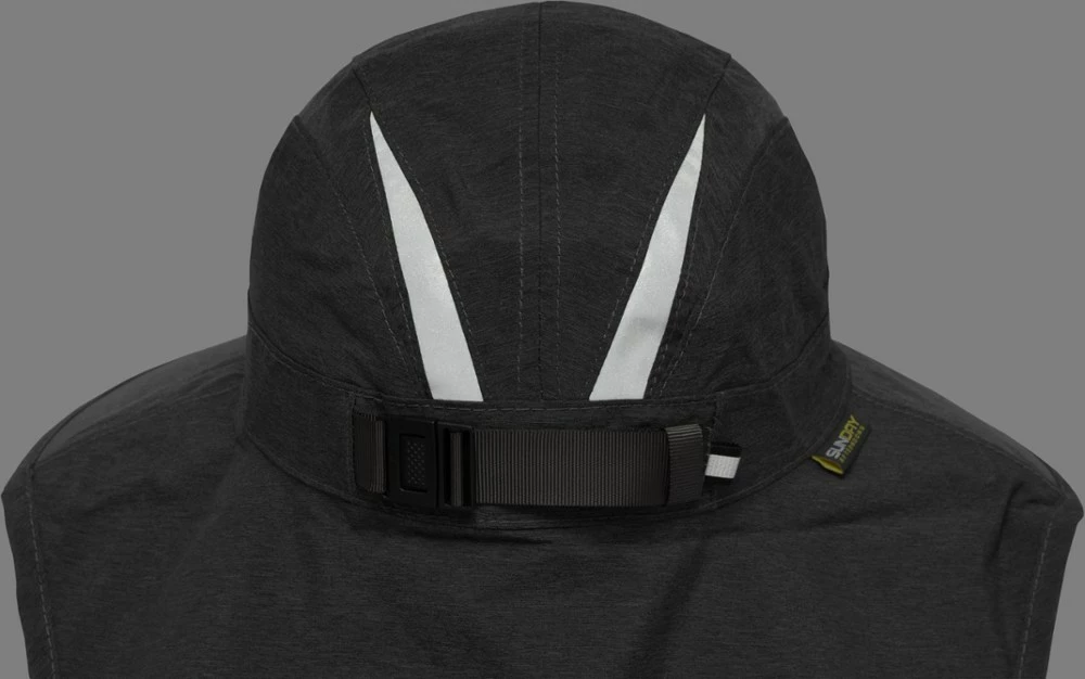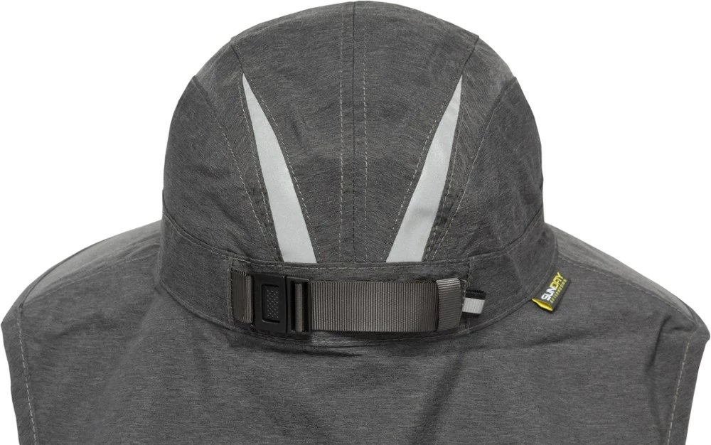 - 3 1/4 in. reverse-clamshell brim folds easily for storage; 6 in. neck cape