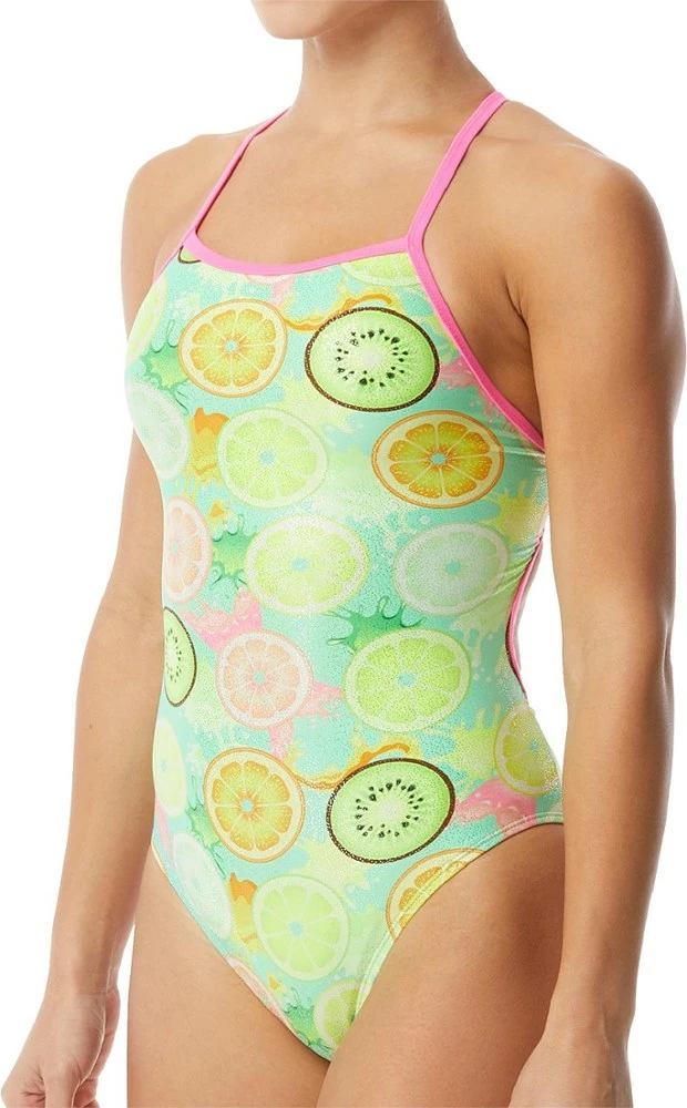Training suits don’t have to be boring. The TYR Coolada Foil Flutterback one-piece swimsuit offers a sleek design with a fun and fruity print for the pool or the beach.