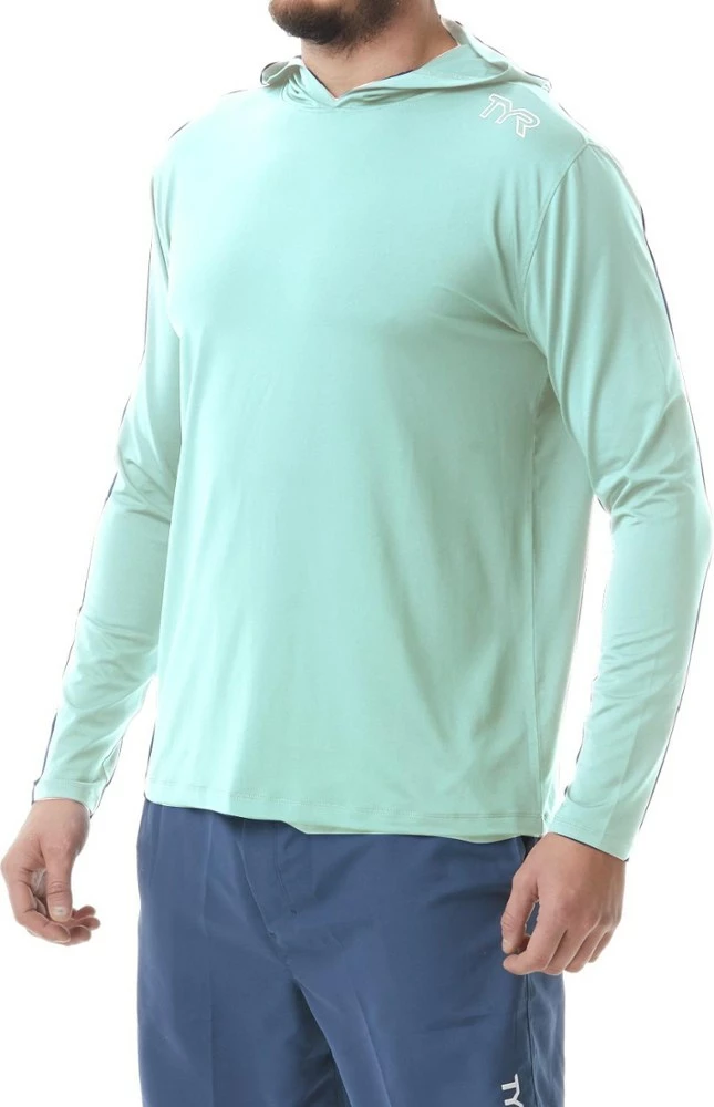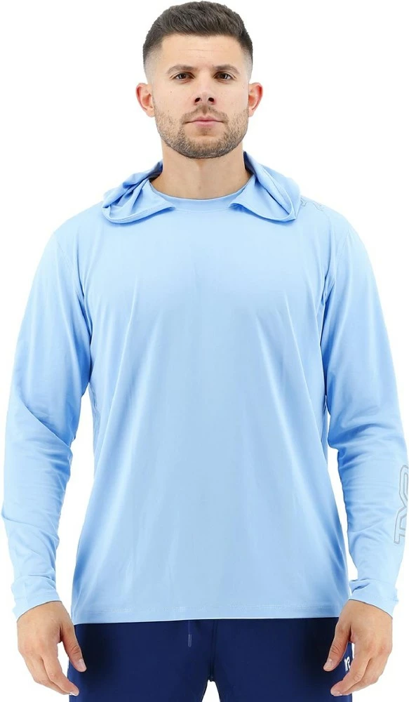 Get ready for summer with the TYR men’s SunDefense hooded shirt. It provides UV protection for outdoor adventurists, whether you’re heading out for a morning workout or a paddleboarding excursion.